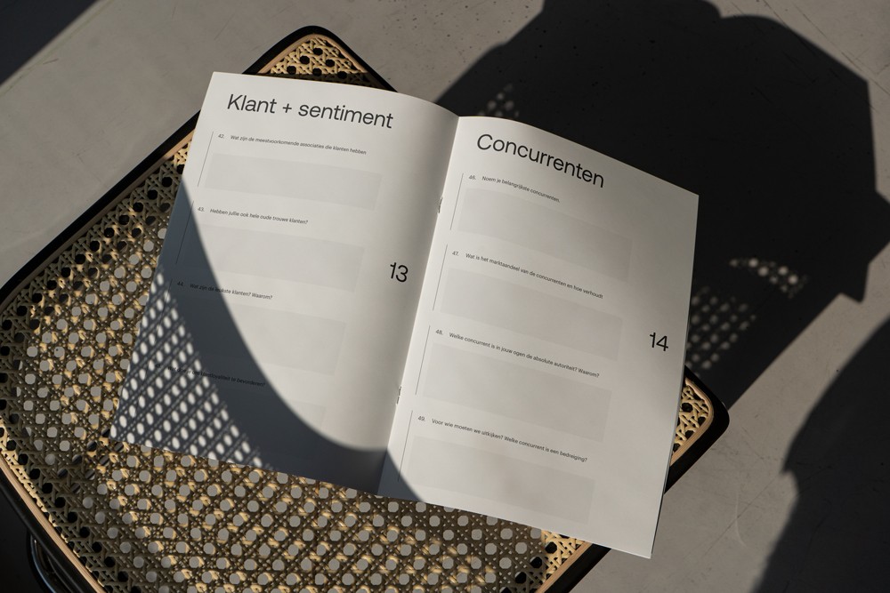 Alle vragen samen zorgen voor een heel uitgebreid en diepgaand inzicht in de organisatie van je klant. Je kunt deze inzichten analyseren, keuze maken voor de vervolgstap in jullie traject en gebruiken om de merkstrategie op te bouwen.